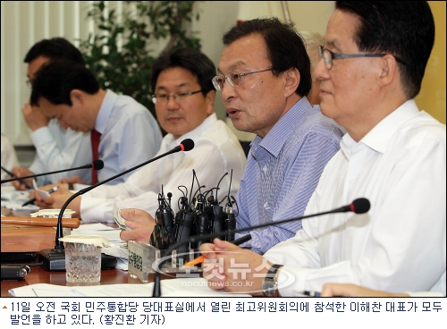이해찬 대표는 11일 최고위원회의에서 "박근혜 후보의 출마 선언 내용을 유심히 보니 말을 경제민주화라고 하지만 내용상 보면 재벌개혁 없는 경제민주화를 주장하고 있다"며 "지금까지의 재벌 몸집불리기는 아무것도 제한하지 않고 그대로 가겠다는 것이다"고 지적했다.