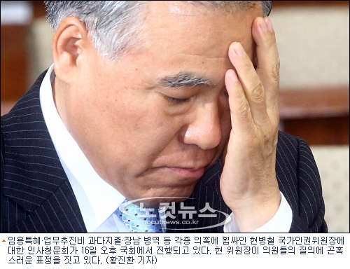 새누리당 홍지만 의원은 "평택미군기지 헌병들이 한국인에게 수갑을 채워 강제로 끌고 가려 했을 때 현장에도 안 가봤느냐"며 "그러면서 인권위 적임자라고 생각하느냐"고 자질을 문제 삼았다.