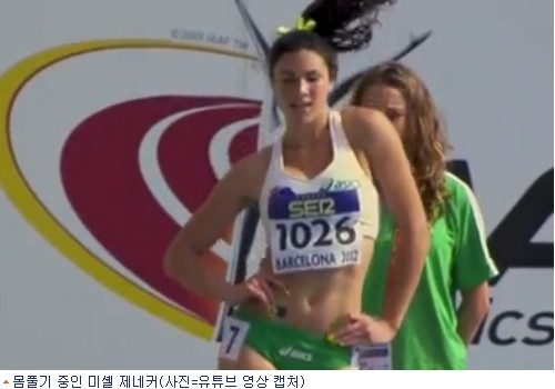 지난주 스페인 바르셀로나에서 열린 '주니어 월드 챔피언십' 대회에 참가한 호주 허들 선수 미셸 제네커(19)는 100m 허들 경기 직전 가벼운 미소를 지으며 허리와 엉덩이를 흔드는 등 독특한 방식으로 몸을 풀었다.