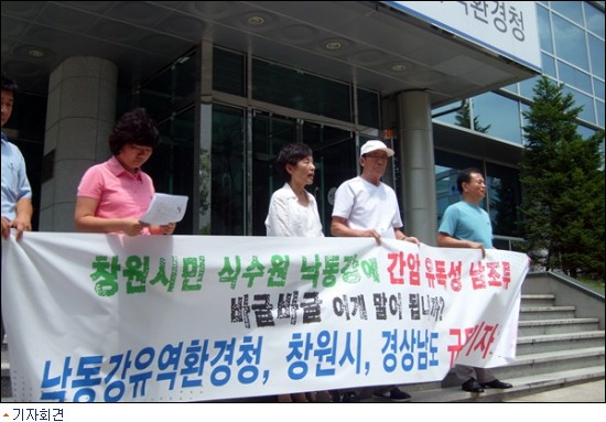4대강사업저지 낙동강지키기 경남본부는 24일 낙동강유역환경청 앞에서 기자회견을 열고, "식수원인 낙동강에 간암을 유발하는 유독성 남조류가 들끓고 있다"며 식수원 관리에 행정력을 동원해야 한다고 주장했다.