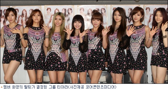 소속사 코어콘텐츠미디어 측은 30일 오후 1시 보도자료를 통해 화영의 탈퇴와 계약해지 사실을 알리며 김광수 대표의 말을 전했다. 티아라를 보좌하는 19명 스태프(스타일리스트5명, 헤어&메이크업 7명, 현장매니저5명, 팀장매니저2명)의 의견을 반영해 화영과 계약을 해지하기로 했다는 것이 김 대표의 입장이다.