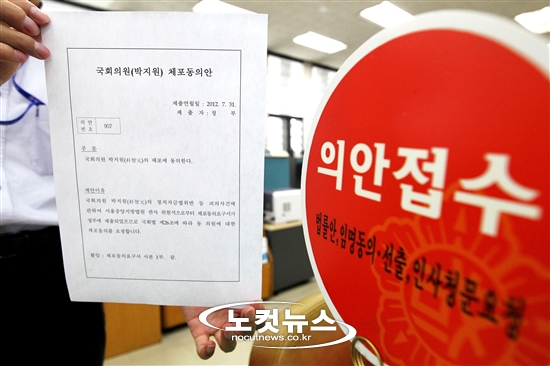 박지원 민주통합당 원내대표 체포동의안이 서울 여의도 국회 의안과에 접수됐다. 31일 오후 의안과 직원이 접수된 체포동의안을 들어보이고 있다. 새누리당은 이날 오전 의원총회를 열고 박 원내대표 체포동의안을 당론으로 추진하기로 결정해 여야간 충돌이 불가피할 전망이다.