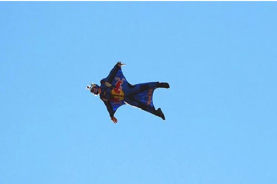 윙수트는 겨드랑이와 다리 사이에 천을 덧댄 것으로, 공기 저항 만으로 하늘을 날면서 역동적인 비행을 만끽할 수 있게 해준다.