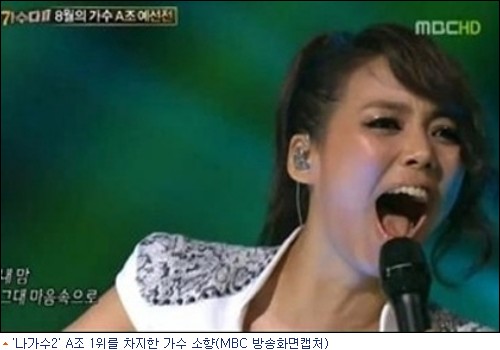 가수 소향이 1위로 MBC ‘나는 가수다2’(이하 ‘나가수2’) 8월의 가수전에 진출했다.