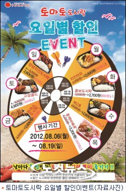 도시락 창업 프랜차이즈 토마토도시락은 8월 6일부터 19일까지 총 2주간 ‘요일별 할인 이벤트’를 진행하고 있다.