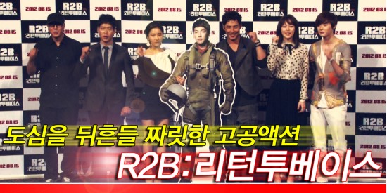8일 오후 왕십리 CGV에서 열린 영화 'R2B 리턴투베이스'언론시사회에 군 복무중인 비를 제외한 주요 배우들인 유준상, 신세경, 김성수, 이하나, 이종석과 감독 김동원이 참석하였다.