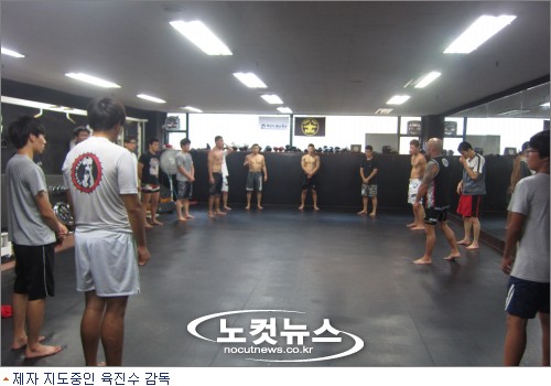 9일 늦은 오후 일산에 있는 한 체육관을 찾아갔다. 들어가자마자 훅 끼쳐오는 남자들의 미묘한 땀 냄새. 그들은 기록적인 폭염에도 아랑곳 않고 매트 위에서 서로 뒤엉킨 채 연습에 몰두하고 있었다. 의자에 앉아 훈련 방향을 지도하는 근육질 남성은 이 체육관의 수장 육진수 감독(37)이다.