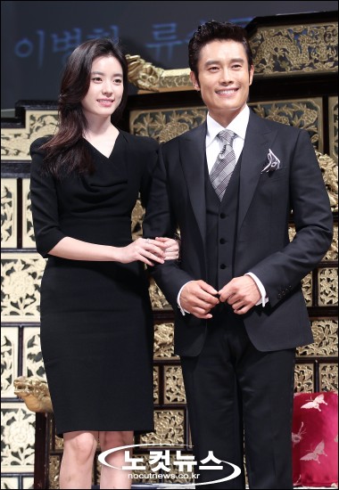 영화 '광해, 왕이 된 남자' 제작보고회가 13일 오전 서울 신사동 압구정 CGV에서 열린 가운데 배우 한효주, 이병헌(오른쪽)이 포토타임을 갖고 있다.