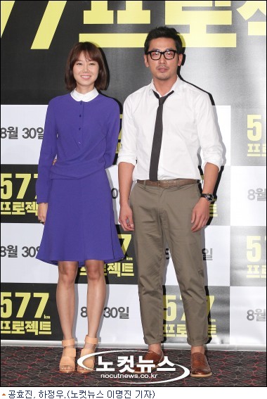하정우는 20일 오후 서울 왕십리CGV에서 열린 577 프로젝트 언론시사회 및 기자간담회에서 "밑도 끝도 없이 말 한마디에서 시작됐다"며 "기왕 이렇게 된 거 (카메라에) 담아보자는 마음이었다"고 밝혔다. 이어 "이 여정에서 고생담이나 깨달음 등 심각한 거 말고 힘든 과정 속에 재미를 찾으려고 했다"고 덧붙였다.