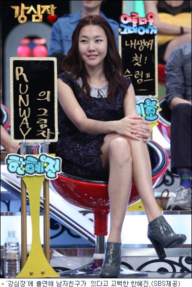 한혜진은 21일 방송된 SBS 예능프로그램 ‘강심장’에 출연해 “남자친구가 있다”고 당당히 밝혔다.