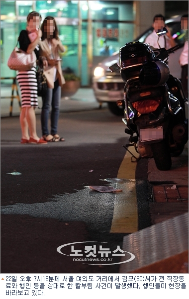22일 저녁 여의도에서 남녀 4명에게 흉기를 휘두른 '여의도 칼부림' 사건은 옛 직장동료들에게 앙심을 품고 저지른 것으로 밝혀졌다.