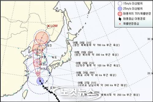 이후 29일 03시에 신의주 북동쪽 약 240km 부근 육상을 지나 30일 새벽 청진 북북동쪽 약 940km 부근 육상에서 소멸될 전망이다.