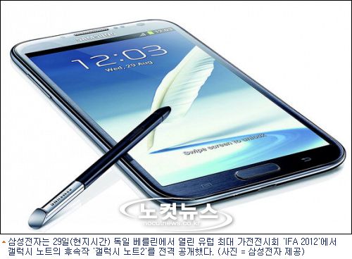 삼성전자는 29일(현지시간) 독일 베를린에서 'IFA 2012(세계가전박람회)' 개막에 앞서 '삼성 모바일 언팩' 행사를 갖고, 갤럭시노트의 후속작 갤럭시노트2를 공개했다.