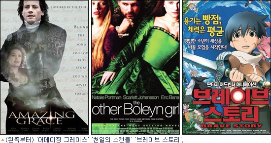 ▶천일의 스캔들= 헨리 8세와 왕의 사랑을 차지하려는 두 자매의 욕망과 유혹을 그린 영화. 왕을 이혼시켜 당당히 왕비의 자리에 오른 뒤 1천일 만에 참수형을 당한 앤의 일생은 드라마틱 그 자체다.