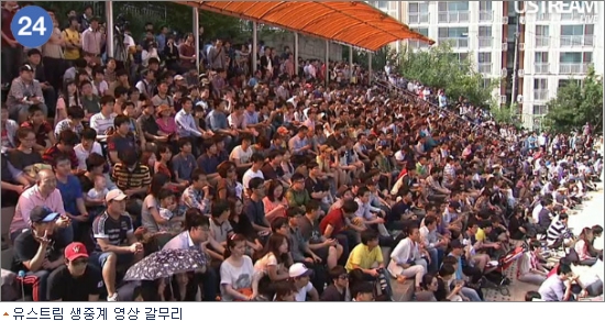실시간 인터넷 방송 아프리카TV와 유스트림(USTREAM)은 인터넷으로 생중계를 했다. 유스트림의 경우 순간 동시 시청자 10만 명을 넘길 정도였다. 이외에 아프리카나 다른 인터넷 방송을 합치면 그 현장이 아닌 곳에서 동시 시청자는 최소 20만 명을 넘길 것이다.