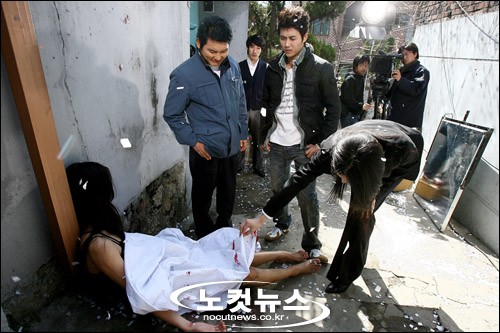 [BestNocut_R]신인 여가수 차수경의 타이틀곡 ''빈가슴''의 뮤직비디오 촬영 현장공개가 20일 오전 서울 미아동의 한 주택가에서 열린 가운데 주연배우로 출연한 재희(가운데)와 배우들이 열연하고 있다.