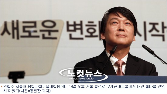 19일 서울 충정로 구세군 아트홀에서 열린 안철수의 국민 보고대회는 사실상 대선 출정식이었다. 대선 출마 선언을 통해 현실 정치인으로 데뷔한 안철수 무소속 후보의 캠프 인선에 관심이 집중되고 있다.
