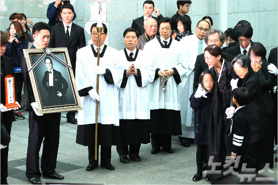 8090 세대에게 음악적 상징이였던 가수 신해철이 향년 46세의 일기로 생을 마감했다. 31일 오전 서울 송파구 아산병원 장례식장에서 엄수된 고(故) 신해철의 발인식에서 유가족들이 슬픔에 잠겨 있다. (윤성호 기자/자료사진)