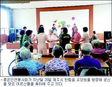 좋은인연봉사회(회장 고영봉)는 지난달 20일 제주시 한립읍에 있는 요양원을 방문해 9월 생신을 맞는 시설 어르신들의 축하 자리를 마련했다.
