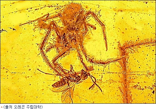 그는 이어 "말벌이 거미로부터 공격 당하려는 순간 송진이 덮쳐 거미와 함께 갇혀버린 것"이라며 화석에 담긴 당시 상황을 설명했다.