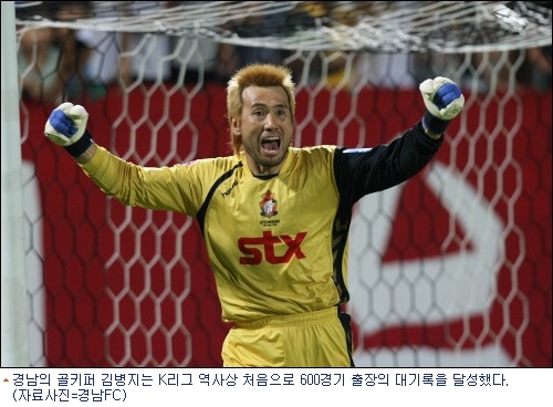 모두 K리그 사상 최초로 600경기 출장 기록을 세운 프로축구 경남FC의 골키퍼 김병지, 단 한 명을 설명하는 수식어다.