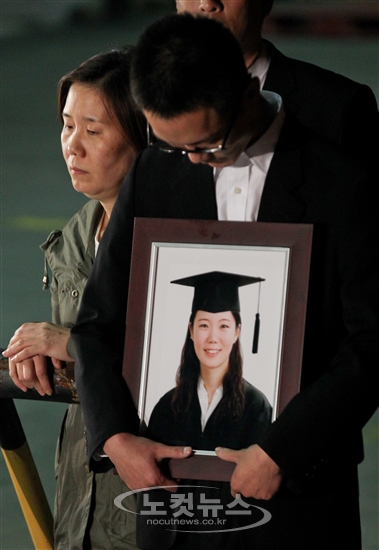 영정사진 들고 있는 유가족