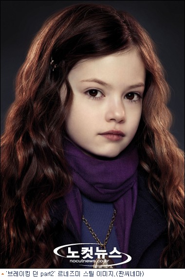 판타지 블록버스터 ‘트와일라잇’ 시리즈의 마지막 신화 ‘브레이킹 던 part2’에서 가장 관심을 모으는 캐릭터는 르네즈미다. 에드워드와 벨라 사이에서 태어난 혼혈아이 르네즈미는 브레이킹 던 part2의 새로운 캐릭터로서 어떤 매력을 선보일지 전세계 트와일라잇 팬들의 관심이 고조되고 있다.