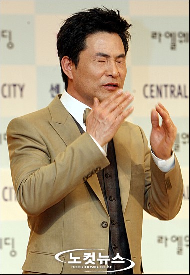 19살 차이의 신부(최혜경)와 결혼하는 탤런트 이한위가 21일 오후 강남 잠원동 센트럴시티에서 결혼 기자회견을 하고 있다.