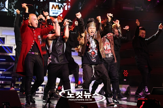 7인조 힙합그룹 블락비가 17일 오후 서울 광진구 악스코리아에서 가진 정규앨범 'Block Buster' 발매기념 쇼케이스에서 타이틀곡 '닐리리 맘보'를 공개하고 있다. 이번 앨범을 타이틀곡 '닐리리맘보'를 비롯, 총 12곡을 담았으며 팀 리더인 지코가 전곡을 작사.작곡했다.