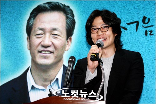 [BestNocut_R]서울 동작을 지역에서 전략공천으로 출마한 정몽준 최고위원이 21일 오후 서울 사당동의 한 빌딩에서 선거사무소 개소식을 연 가운데 탤런트 이서진이 찾아와 "정몽준 의원은 아버지 같은 분"이라고 말하고 있다.