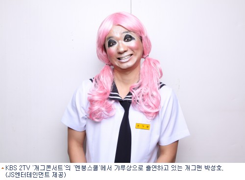 "아니무니다"를 외치는 4차원 여고생 '갸루상' 박성호(38). 갸루상의 인기에 힘입어 초등학생들한테 '인기 짱'이라는 그는 데뷔 16년을 맞은 KBS 2TV '개그콘서트'의 맏형이다. 박준형, 임혁필, 서동균 등 '개그콘서트' 무대에 함께 올랐던 동기들이 다른 무대에서 활동하고 있는 것과 달리 박성호는 여전히 '개그콘서트'를 굳건히 지키고 있다. 박성호에게 '개그콘서트'는 어떤 의미가 있는 프로그램일까. '개그콘서트' 녹화가 있던 수요일 오후, 대기실에서 그를 만났다.