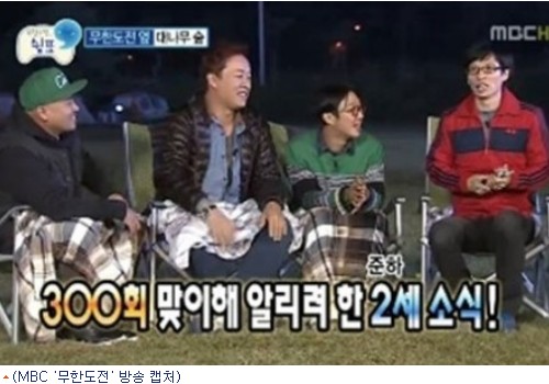 한편 정준하가 2세 소식을 알린 20일은 '무한도전' 300회와 함께 Y스타 '식신로드' 100회를 맞이한 날이라 누리꾼들은 "정준하가 겹경사를 맡았다"는 반응을 보였다.