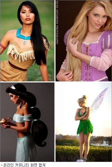 이 캐릭터 실사 사진은 영국에서 그래픽 디자인을 전공하는 한 학생이 디즈니 애니메이션에 등장하는 여주인공 캐릭터들을 모아 현실 속 여성의 모습으로 새롭게 꾸민 것이다.
