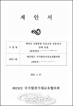 국방부는 올해 초 국가발전미래교육협의회(이하 국발협)와 예비군 동원훈련 안보교육과 관련한 계약을 맺었다.(왼쪽 사진)