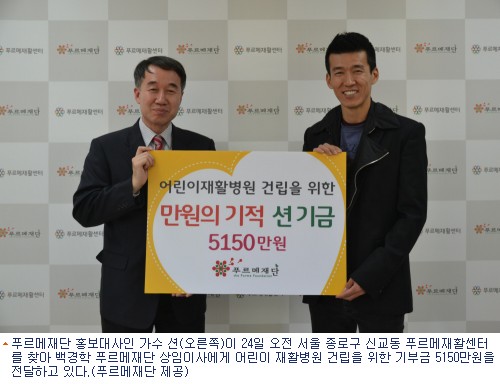 가수 션이 장애어린이재활병원 건립을 위해 큰 힘을 보탰다.