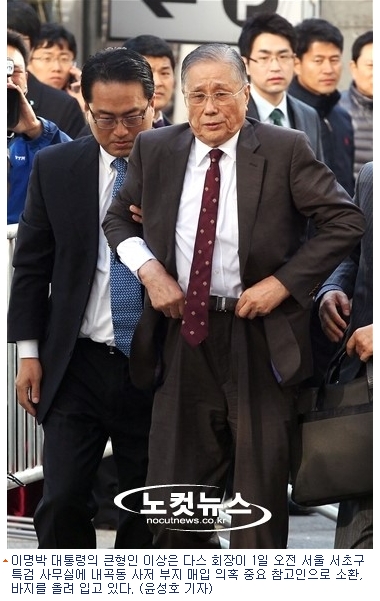 이명박 대통령의 큰형 이상은(79) 다스 회장이 1일 오전 9시49분 이광범 특별검사팀에 참고인 신분으로 소환됐다.