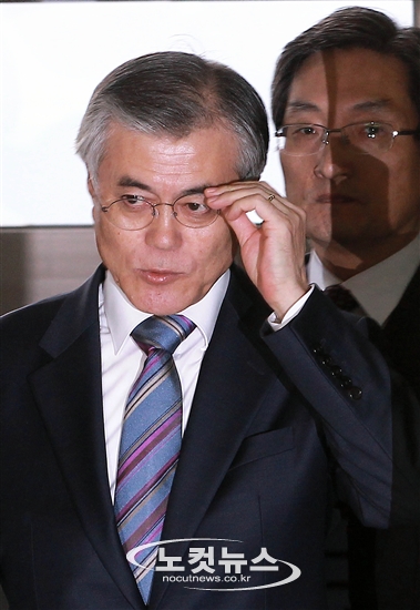 민주통합당 문재인 대선후보가 25일 오후 서울 영등포 당사 선거캠프에서 기자회견을 갖기 위해 입장하고 있다. 문 후보는 기자회견에서 "조금 전 대통령선거 후보등록 마쳤다. 야권단일후보의 막중한 책임, 정권교체의 역사적 책임 반드시 승리로 보답하겠다" 고 다짐을 밝혔다.