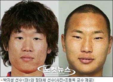도립 충북과학대 생체신호분석연구실 조동욱(50.정보통신과학과) 교수는 24일 대한민국 대표팀 박지성(맨체스터 유나이티드) 선수와 북한의 정대세(가와사키 프론탈레) 선수에 대한 얼굴 영상 분석결과를 발표했다.