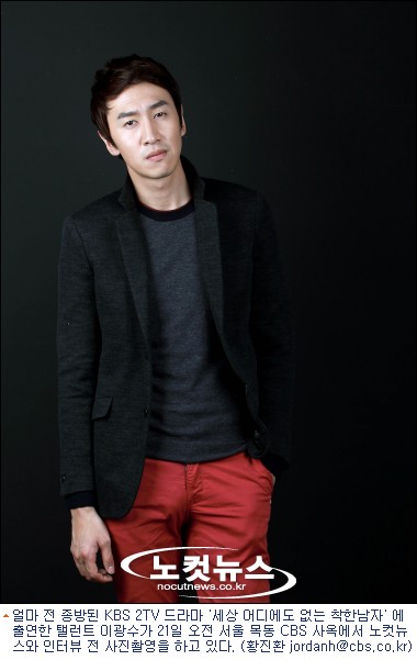 ◈ 앞으로 하고 싶은 연기는 '악역'이광수는 고등학교 때 모델로 일을 시작했지만 연기자가 되고 싶어 극단에서 연기를 공부했다. 이미 연기자 5년차에 접어들지만 여전히 자신의 장단점에 대해 냉정하게 파악하고, 지금까지 온 것도 "운이 좋았다"며 겸손해하는 모습을 보였다.