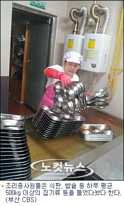 이미 한계에 이른 노동강도에 부산지역 조리종사원들이 집회를 갖는 등 고통 섞인 비명이 터져나오고 있다.