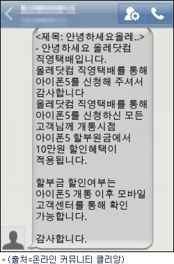KT 측은 이번 논란에 대해 "당초 단말할인은 방통위 조사기간이고 보조금이 추가로 지급돼야 가능하기 때문에 있을 수 없는 일"이라며 "문자를 받은 고객들에게 할부원금에 대한 할인을 적용하지는 않지만 개통시점에 액세서리 제공 등을 포함한 다양한 혜택을 준비하고 있다"고 해명했다.