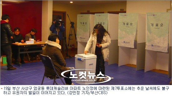 제주도를 제외하면 우리나라에서 가장 따뜻한 부산도 이날 기온이 영하권으로 떨어졌지만, 자신에게 주어진 소중한 한 표를 행사하기 위한 주민들의 행렬이 이어졌다.