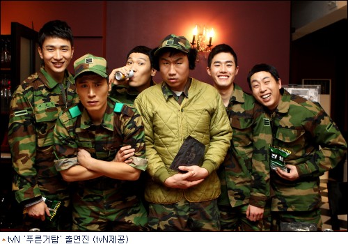 대한민국 군필 남성들이라면 누구나 애증을 갖고 있는 군대 에피소드가 드라마로 탄생한다. 케이블채널 tvN ‘롤러코스터’의 한 코너로 사랑받았던 ‘푸른거탑’코너가 폭발적인 인기에 힘입어 시트콤으로 독립편성된 것. ‘푸른거탑’코너는 오는 23일 첫 방송을 앞두고 있다.