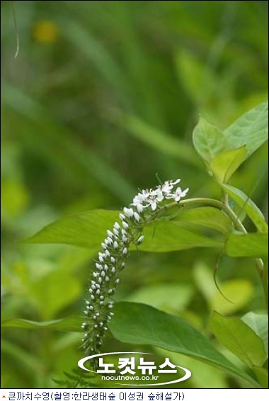 겨울에도 제주에서는 푸른 잎을 달고 있는 나무들을 볼 수 있어 육지와는 다른 계절을 맛볼 수 있습니다. 어제는 기후변화 교육프로그램에 참가하고 있는 현직 선생님들과 함께 서귀포에 있는 사계절 푸른 나무들로 이루어진 숲길을 걸었습니다. 기후변화에 따른 숲의 역할과 그 소중함을 알아보자는 취지의 숲길 걷기였지만 한 겨울에 푸른 숲을 걸을 수 있어서 좋았습니다. 이 숲길은 몇 년 전 들꽃보기를 시작할 때인 여름철에 까치수영을 맨 처음 봤던 곳이기도 합니다. 햇빛이 잘 드는 길섶에서 특이하게 꽃대를 올린 까치수영은 아직도 특별한 꽃으로 남아 있습니다.
