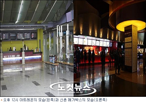 그 곳이 사라지는 이유?아트레온의 마지막 상영일인 15일 낮 12시, 신촌에 위치한 두 영화관의 풍경은 사뭇 달랐다. 신촌 기차역에 있는 메가박스에선 상영 중인 영화가 이미 예매가 완료되어 난감한 모습의 관객들이 보였다. 평일 낮임에도 불구하고 사람들로 북적이는 모습이었다.