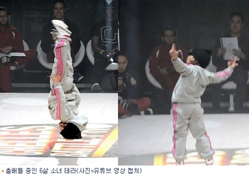 브레이크 댄서 6살 B-걸이 상대를 제압하는 멋진 춤솜씨로 해외토픽에 올랐다고 4일 영국 매체 데일리메일 등 외신들이 전했다.