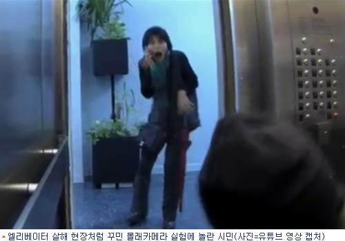 ☞ '엘리베이터 살해 현장을 목격한다면?' 몰카 영상 보러가기지난 4일 동영상 사이트 유튜브에 유저 '비어트리스리벤지'가 몰래카메라 영상을 올렸다.