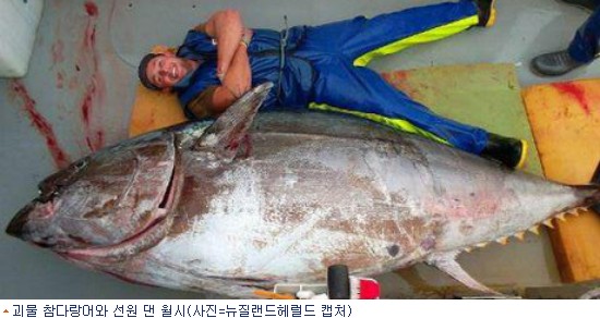 뉴질랜드에서 400kg이 넘는 괴물 참다랑어가 잡혔다고 7일 뉴질랜드 매체 스타프 등 외신들이 전했다.