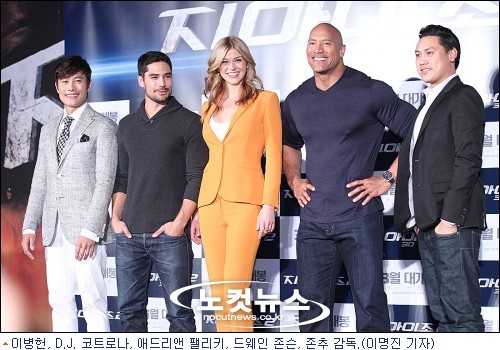감독의 뒤를 이어 내한행사에 참여한 배우들의 '이병헌 찬가'가 이어졌다. 지아이조 군단의 신참 요원 플린트로 합류한 D.J. 코트로나는 "이병헌을 만나기 전부터 그가 출연한 영화를 봐왔고, 팬이었다"며 "실제로 만나 작업할 수 있어 영광이었고, 친구가 될 수 있어 기뻤다"고 자랑했다.