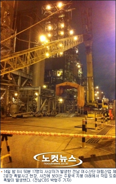 여수 국가산업단지 내 대림산업 화학공장 폭발사고를 목격한 근로자들이 참았던 울분을 터뜨렸다.